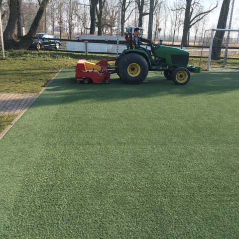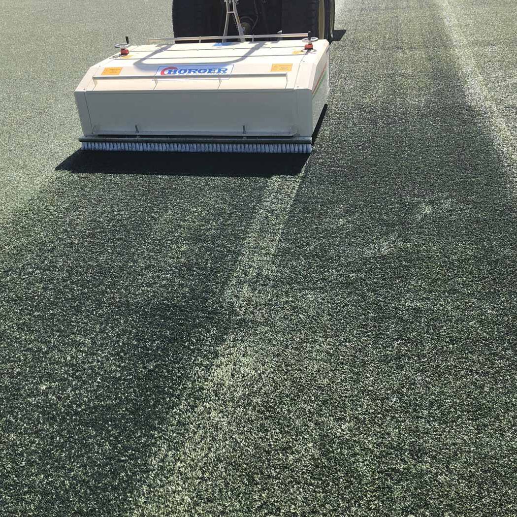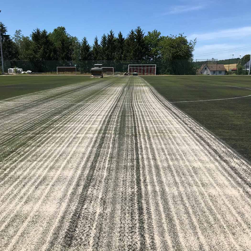Sand/ Granulat verfüllte Kunstrasenflächen unterliegen vom ersten Tage an den starken Einflüssen der Umwelt. Staub, Pflanzenreste und Abriebmaterial werden durch Regenwasser in das Infillmaterial gespült.