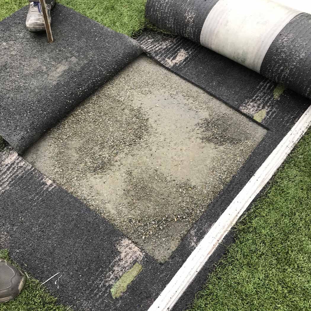 Das Ergebnis ist eine völlig verhärtete Kunstrasenfläche, die Wasserdurchlässigkeit ist nicht mehr gegeben und der mit Humuspartikeln durchsetzte Belag bildet den idealen Nährboden für Algen und Moosbefall.