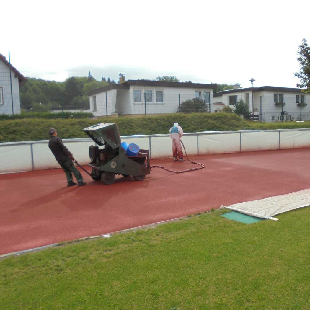 Jeder Kunststoffbelag (Tartan) ist irgendwann einmal abgenutzt und muss saniert werden. Wir sanieren Ihren Sportboden, egal ob es sich um einfaches Retopping, die Ausbesserung von Teilflächen oder den kompletten Neueinbau handelt. Beim Retopping wird auf den bestehenden Kunststoffbelag eine fugenlose PUR-Beschichtung aufgebracht, in die das EPDM-Granulat eingestreut wird.